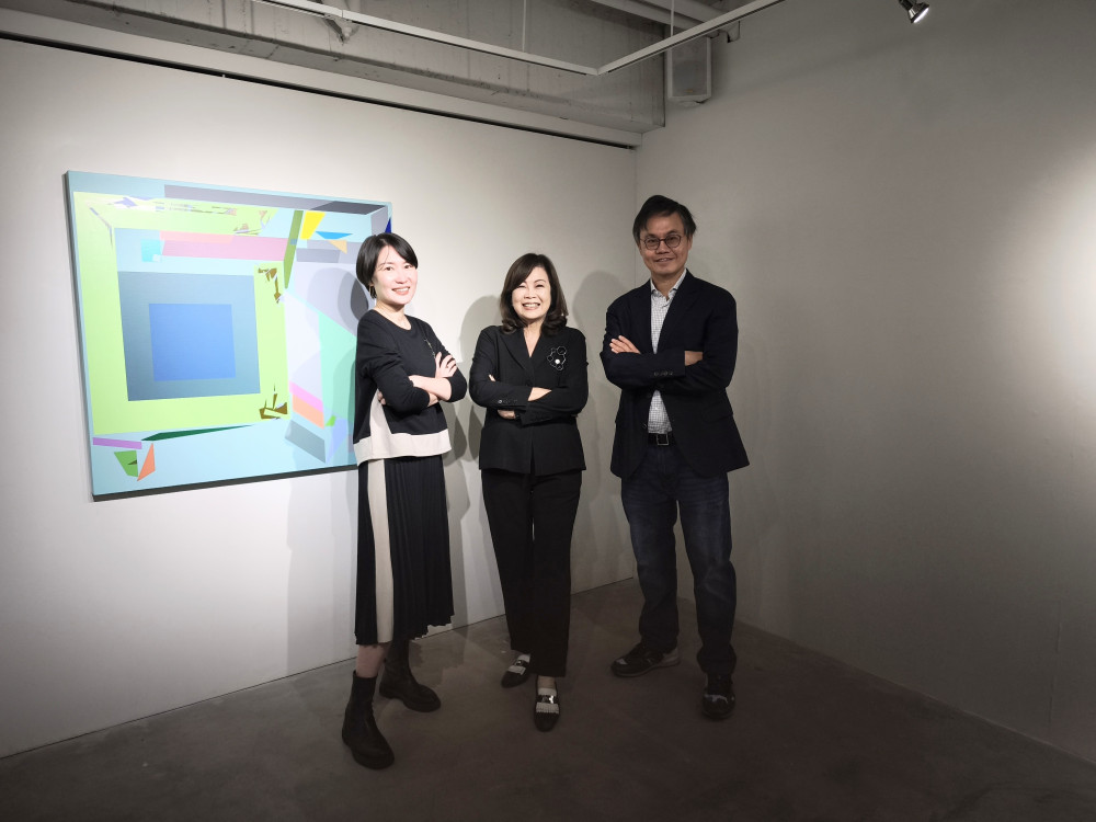 以這次展出的藝術家為例 ,胡坤榮 以幾何抽象延續了繪畫對秩序的追尋,從最單純的形狀與色彩出發,把畫面視為一個可持續變動的結構場域;色彩與線條在平面上延展成多維的視角,層疊的節奏延展為時序的軌跡。