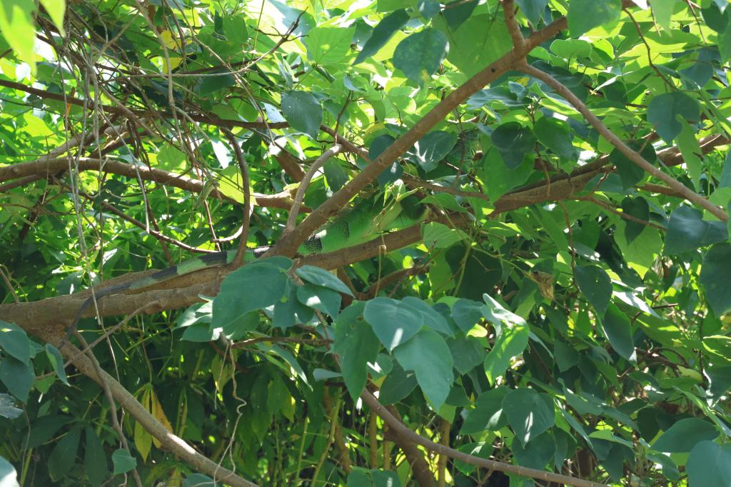 ▲綠鬣蜥於入秋繁殖季會趨近水域環境進行配對,然因個體具保護色,巡查較為不易,仰賴民眾主動通報後掌握熱點並制定移除策略。(圖/林保署新竹分署提供)