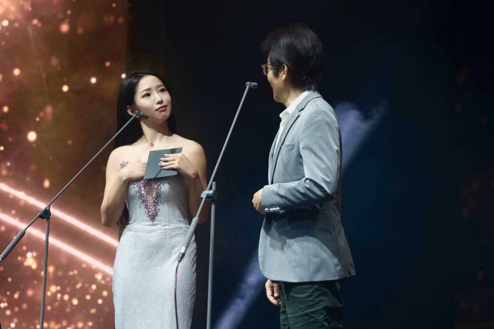 郭書瑤(左)與導演魏德聖(右)同台、受邀金獅大賞擔任頒獎人。(圖:混血兒娛樂)