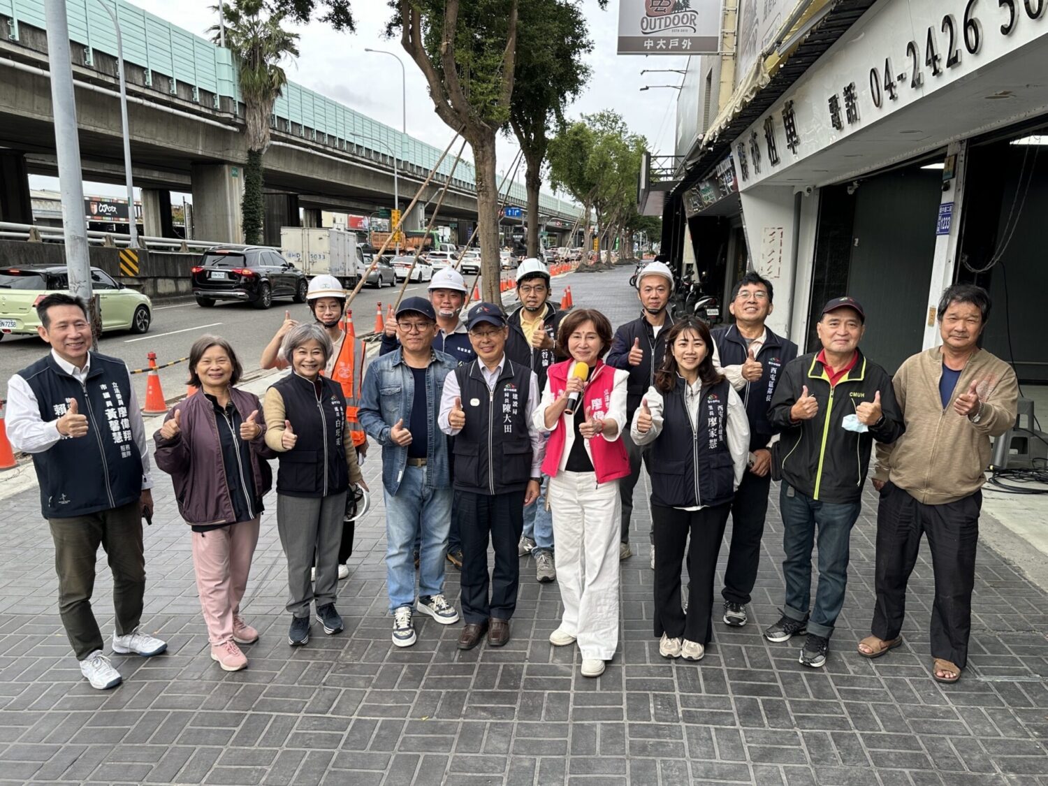 建設局長陳大田表示,「西屯區環中路二段(台灣大道至西屯路)雙側人行道及路面改善工程」為市府推動的人本環境優化計畫,已完成多項友善行人設施改善,包括路燈箱遷移、樹穴改善及新設無障礙斜坡道等,優化人行道總面積約5,724平方公尺,並於2處重要路口新設行人庇護島。目前工程已進入最後階段,將辦理瀝青混凝土(AC)路面刨鋪改善作業,改善面積約2.5公頃。完工後,將完善整體人本通行空間,有效提升環中路機慢車道平整度與路口行車安全,並與既有改善完成的人行道系統相互銜接,打造更安全、順暢且友善的用路環境。