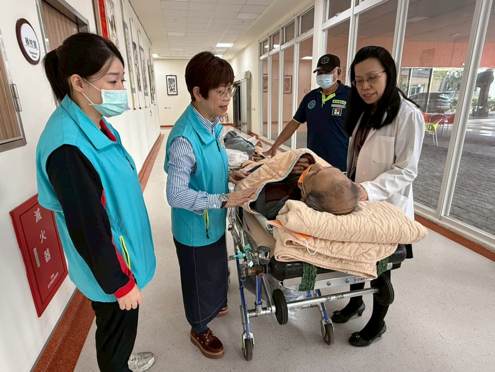 榮家說明,本次接送全程由合法專業民間救護車負責,配備擔架床與完善固定裝置,車內並備有基本醫療器材與受過訓練救護人員,即時留意長者呼吸、血氧、體位與保暖情形,讓長者在轉送途中也能獲得妥善照護;平時生活照顧輔導員亦全程陪同在側,透過輕聲談話與熟悉互動安撫長者情緒,讓長者在熟悉面孔陪伴下安心踏上新照護旅程。