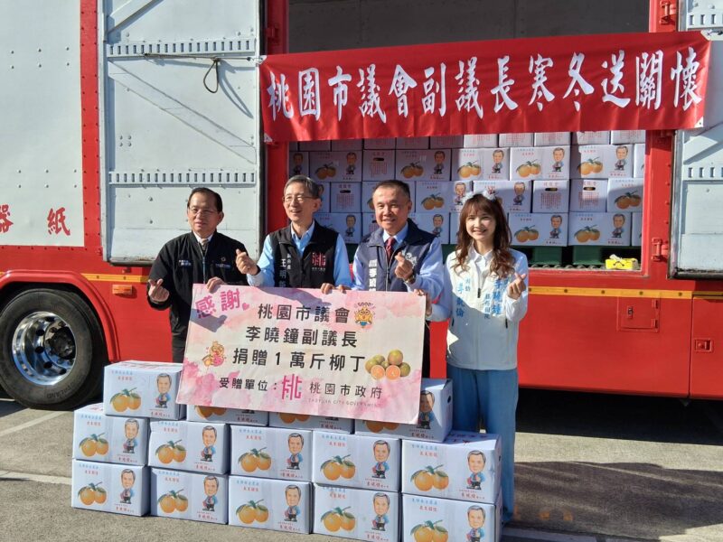 【News586/記者彭慧婉報導】桃園市議會副議長李曉鐘12月23日辦理「寒冬送暖關懷-萬斤柳丁捐贈活動」。桃園市副市長王明鉅表示,副議長李曉鐘長年投入桃園社會公益,已連續18年於寒冬時節發起萬斤柳丁捐贈行動,透過與農民契作方式採購雲林柳丁,交由市府社會局分送至桃市社福機構及安家食物銀行,感謝李副議長的公益行動,讓溫暖善意傳遞桃園角落。桃園市議會副議長李曉鐘、市府社會局長陳寶民、桃園區副區長邱創正及各受贈單位代表等皆一同出席。