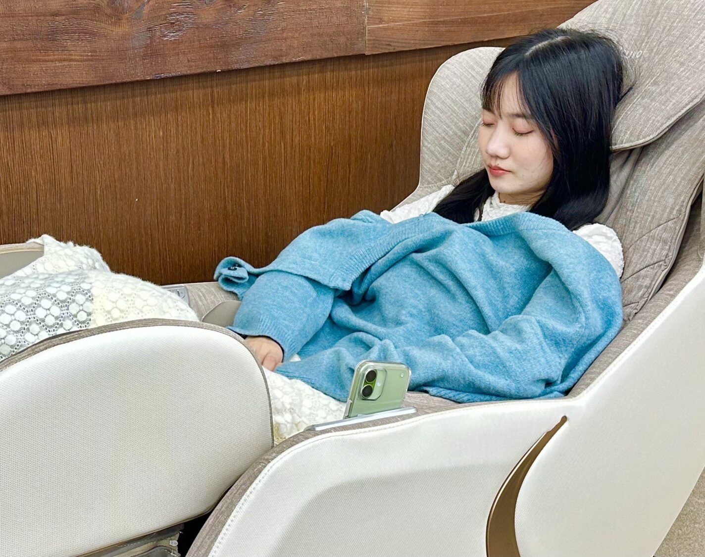 目前就讀中文系大四的林同學說,身為應屆畢業生,近期為了準備畢業作品集(文學創作),在長時間查閱資料找靈感,經閱讀與寫作後,肩頸常感到僵硬酸痛,此時下樓使用按摩椅,「感覺積壓整天的壓力瞬間消失」。林同學特別稱讚館方的巧思,將設施安排在鄰近洗手間與飲水機的動線交會點,讓休息過程極為便利。她向校方提議,若未來經費允許,希望能增設更多按摩椅,讓這份貼心服務也能擴及至同樣辛苦教學的教職員使用。