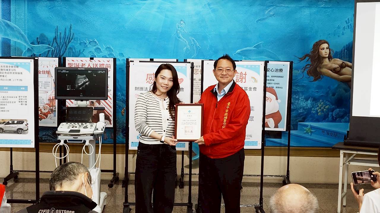 【焦點時報/記者張彥勳埔里報導】財團法人戴水教育基金會長期回饋社會,將小愛轉化大愛,捐贈臺中榮總埔里分院醫療巡迴車2部及高階超音波掃描儀1台,日前在該院醫療大樓一樓舉行隆重捐贈儀式,由張仁義院長代表受贈,並回贈獎狀乙紙感謝基金會公益善行。