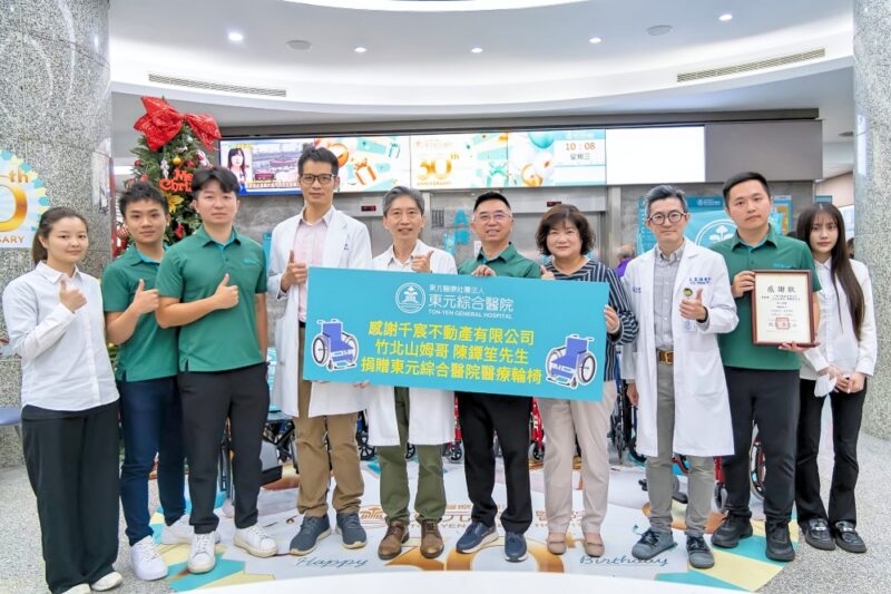 【焦點時報/記者羅蔚舟報導】在充滿溫暖與祝福的聖誕節前夕,東元醫院收到一份意義非凡的公益禮物。東元綜合醫院於今(12/24)日在一樓大廳舉行「聖誕傳愛捐贈儀式」,由千宸不動產有限公司-陳鐔笙先生慷慨捐贈「兒童輪椅五台以及骨科輪椅五台」,為就診病人帶來實質且即時的幫助,也讓平安夜這天增添暖意。院方也由林鎮宇副院長、兒科部王昱程部長及骨科黃盈誠主任代表受贈,並向捐贈者陳鐔笙先生表達最誠摯的感謝。