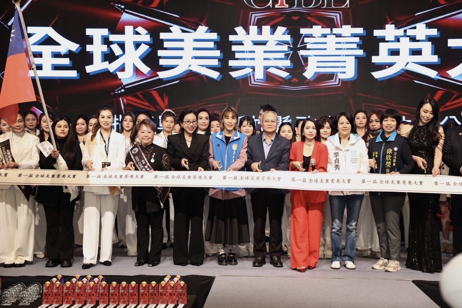 全球美業菁英大賞開幕儀式大合影,政界、產業與教育界代表齊聚,共同見證國際美業盛會啟動。(圖/記者林照東攝)