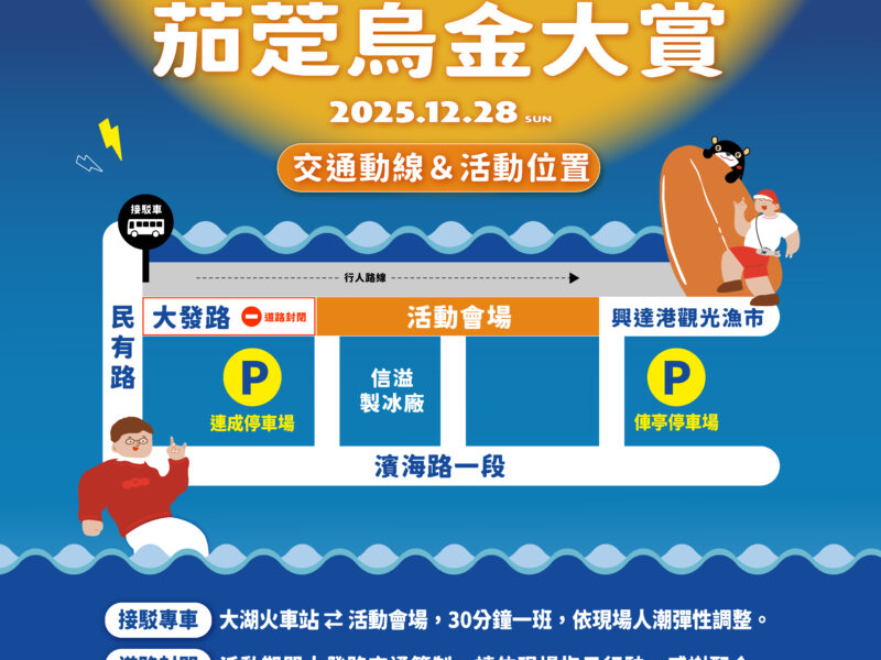 觀光局提醒,活動當日興達港觀光漁市北側大發路將實施封路管制,活動特別規劃接駁車,從「大湖火車站」往返活動會場,建議遊客多加利用大眾運輸或搭乘接駁車方式前往,共同落實低碳旅遊。年末高雄週週有活動,歡迎走進茄萣賞夕陽、聽音樂、嚐烏金、逛市集,感受最道地的漁村風情。更多資訊請上「高雄旅遊網」(https://khh.travel)、FB粉專及IG查詢。