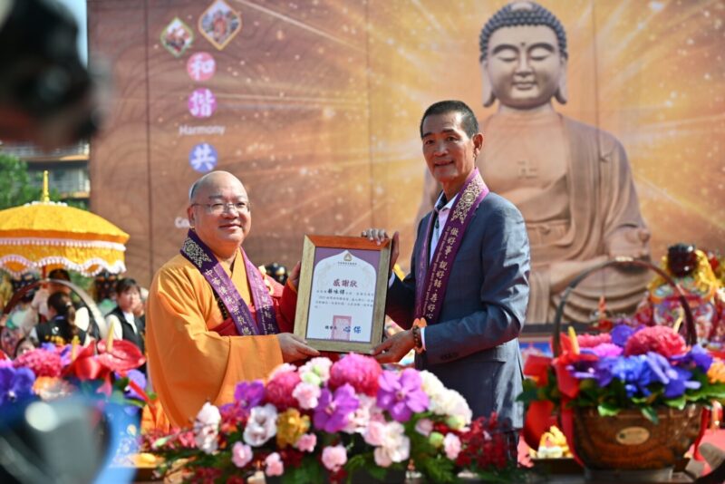 今年有逾1100座宮廟與會,有觀音佛祖、天上聖母、關聖帝君、玄天上帝、瑤池金母、福德正神、儒學孔子、天主聖嬰等,神尊、神轎及陣頭從成佛大道走向菩提廣場,禮敬大佛;多元宗教文化交會的壯觀畫面,顯現信仰凝聚人心的強大力量。