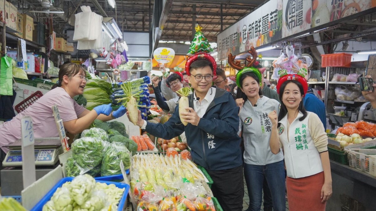 民進黨高雄市長初選進入倒數階段,立委賴瑞隆於聖誕節當天上午前往左營哈囉市場掃街拜票,吸引大批攤商和採買民眾熱情回應,其中也有攤商熱情開心地致贈象徵好彩頭的大菜頭來祝福賴瑞隆。 (圖:記者李佳龍/翻攝)
