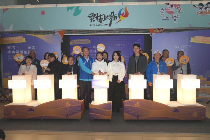 副縣長謝淑亞與貴賓一起點亮古坑旅宿營造成果。謝淑亞說,縣府的角色就是整合資源、搭起平台,讓家鄉成為遊子願意回來、旅客願意一來再來的地方,期盼古坑與雲林成為讓人安心生活、戀愛、定情、成家的美好所在。縣府希望未來能把這樣成功的模式,推展到縣內其他的地方。