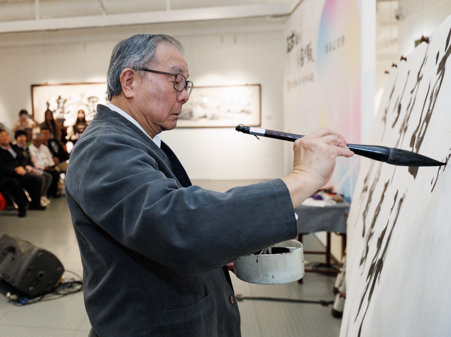 張炳煌教授是臺灣家喻戶曉的書法名家,今(27日)在新竹縣政府文化局美術館101展廳舉辦「承古開新、筆墨共融-書法暨e筆作品展」,開場由銅好樂團三重奏揭幕,而與張教授擁有多年深厚友誼的聲樂家簡文秀,特別專程趕赴新竹,高歌一曲〈又見炊煙〉結合張教授的書法揮毫,實為難得一見的跨域藝術聯動!