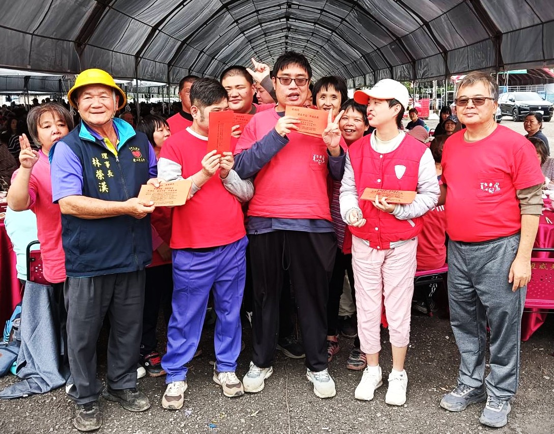 美濃愛心慈善會理事長林榮漢27日舉辦一年一度拔蘿蔔和午餐饗宴,邀請日月光科技總裁張吉安致詞,愛心團體義工朋友,弱勢團體以及親朋好友數百人共襄盛舉,中午餐會席開百餘桌,林理事長現場頒發紅包給憨兒窯喜憨兒。