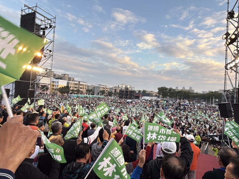 民進黨高雄市長初選參選人、立法委員林岱樺今於鳳山舉辦壓軸大造勢,活動現場湧入大批支持群眾,主持台宣布現場突破10萬人,直播空拍畫面顯示場地全數滿座,周邊人潮持續外溢,創下同場地民進黨市長初選活動人數新高,林岱樺登台,現場群情激動,高喊「加油」、「當選」,支持者情緒達到高點。