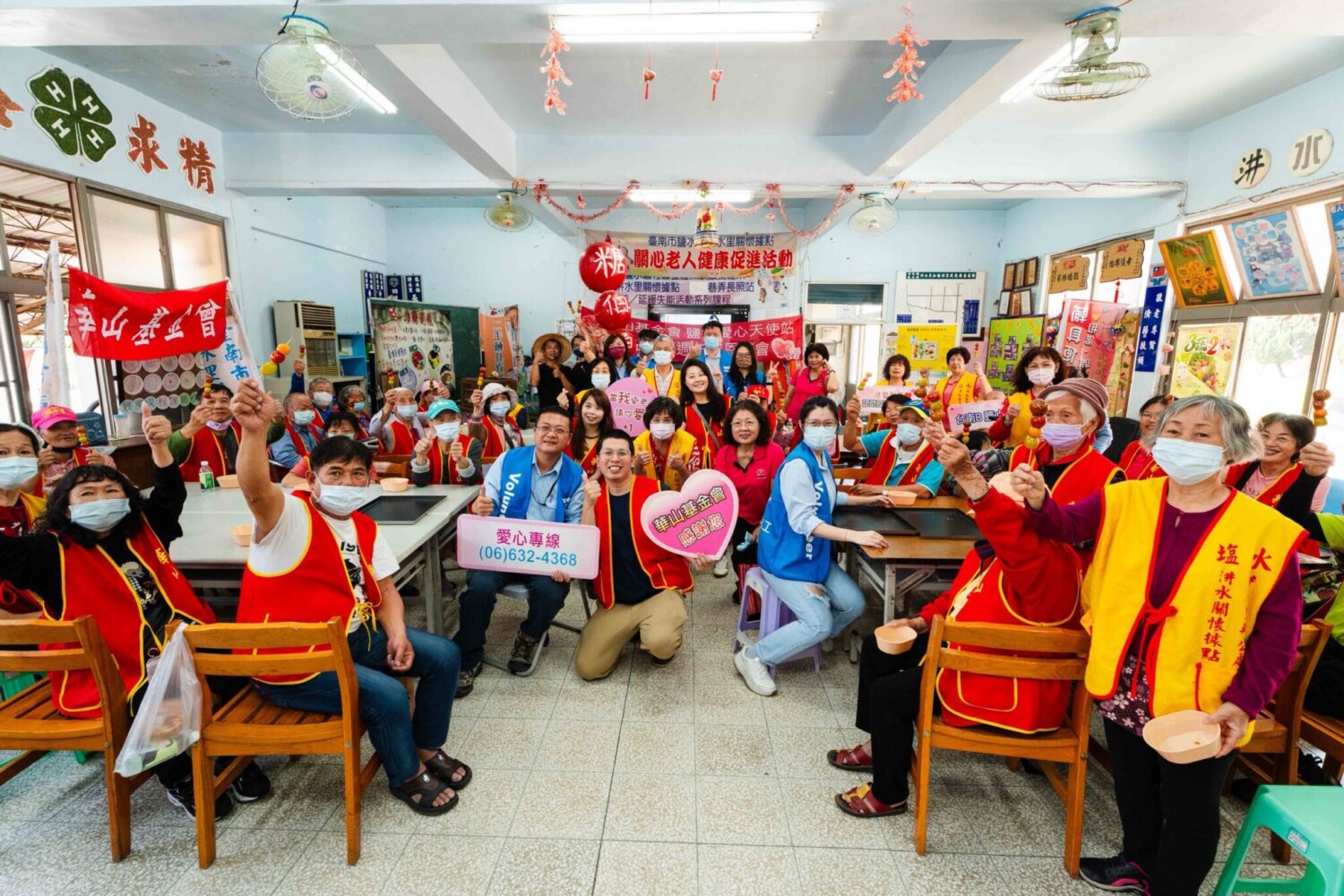 圖:在地長者來到汫水社區關懷據點,參加由華山基金會與企業志工攜手舉辦的感恩餐會。圖/華新麗華提供