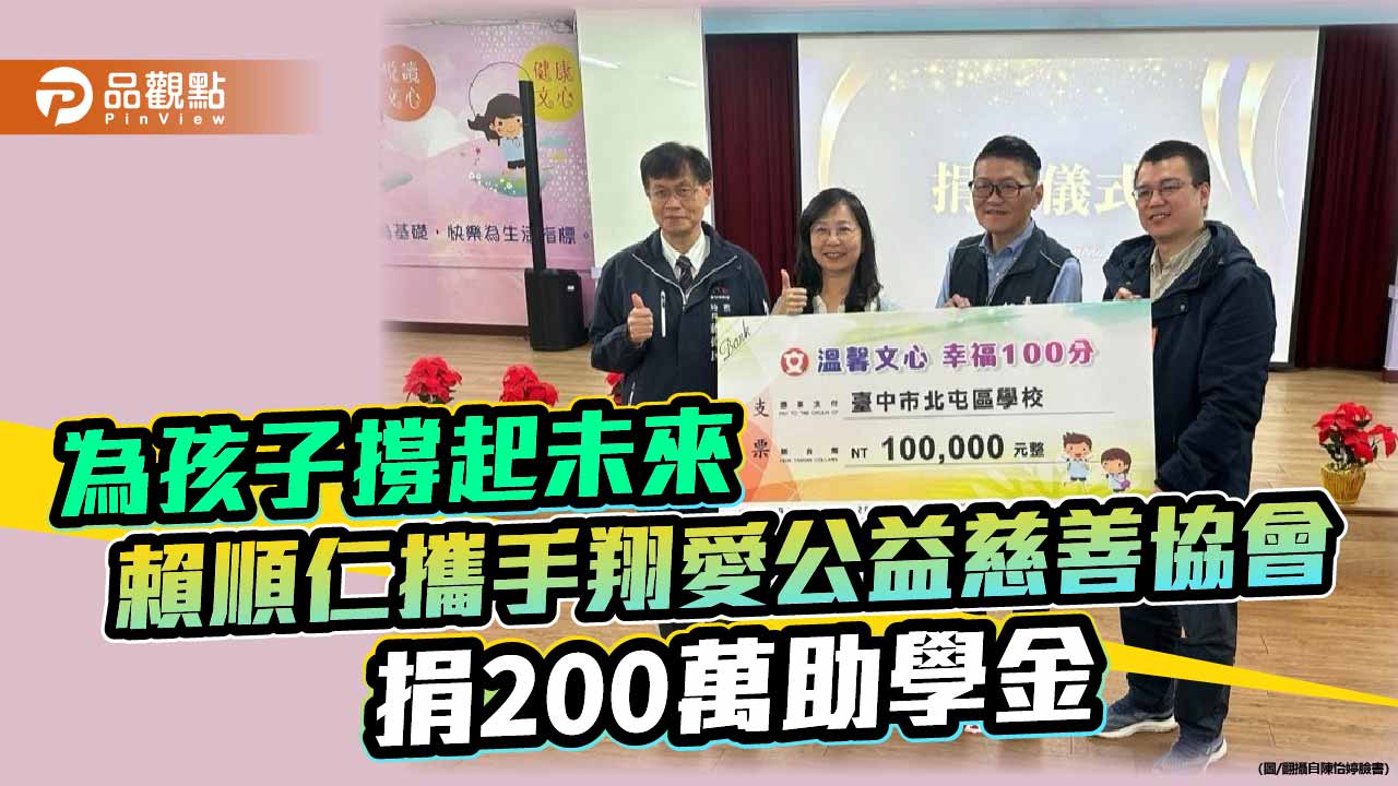為了不讓孩子在求學道路上,因家庭變故而被迫停下腳步,台中市議員賴順仁攜手社團法人臺灣翔愛公益慈善協會,今(29)日共同捐贈200萬元設立「北屯區學校助學金」,挹注北屯區27所國中小學,協助經濟弱勢及遭遇突發狀況的學生安心就學,減輕家庭負擔,為孩子注入持續前行、勇敢追夢的力量。