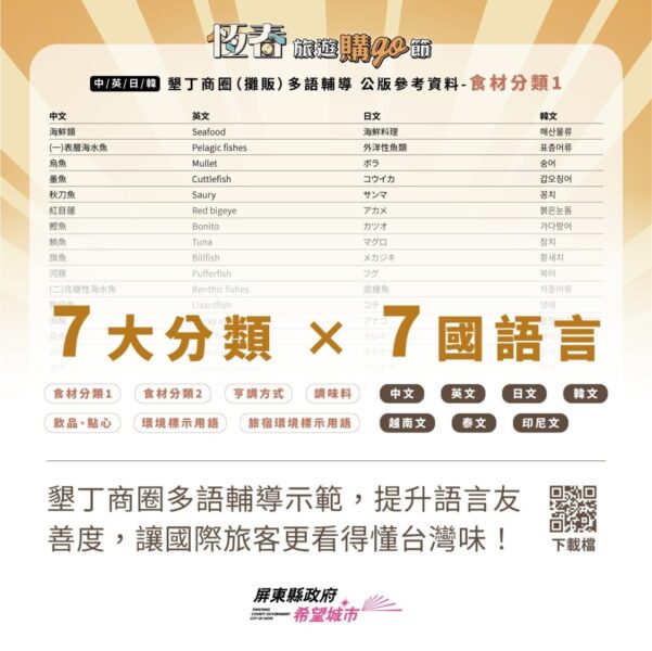「讓國際旅客看得懂台灣味」屏東縣政府推動墾丁商圈多語友善措施