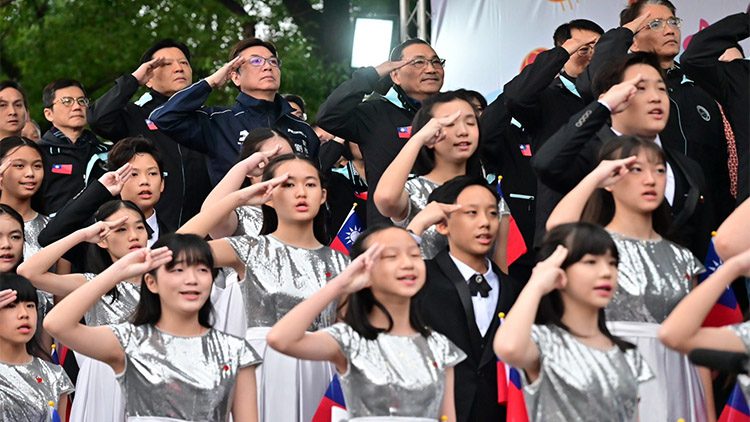 升旗典禮由退儀邦及年僅10歲的小禮兵孫孫引領國旗進場,透過俐落操槍與整齊劃一的步伐,展現高度默契與莊嚴氛圍;隨後由新北市少年合唱團領唱國歌,並合唱多首正能量歌曲,在嘹亮歌聲中為新的一年注入前進的力量。