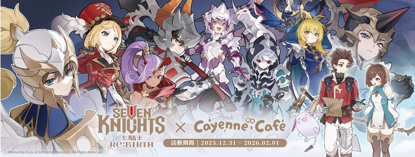 Netmarble 旗下承載全球玩家共同回憶的經典角色扮演遊戲《七騎士Re:BIRTH》首度攜手凱岩主題餐廳 Cayenne Café,推出橫跨跨年的限定主題店!活動將於 2025 年 12 月 31 日正式開幕,至 2026 年 2 月 1 日止,讓冒險者們能在歲末年初之際,透過美食與英雄們於聖域中團聚。