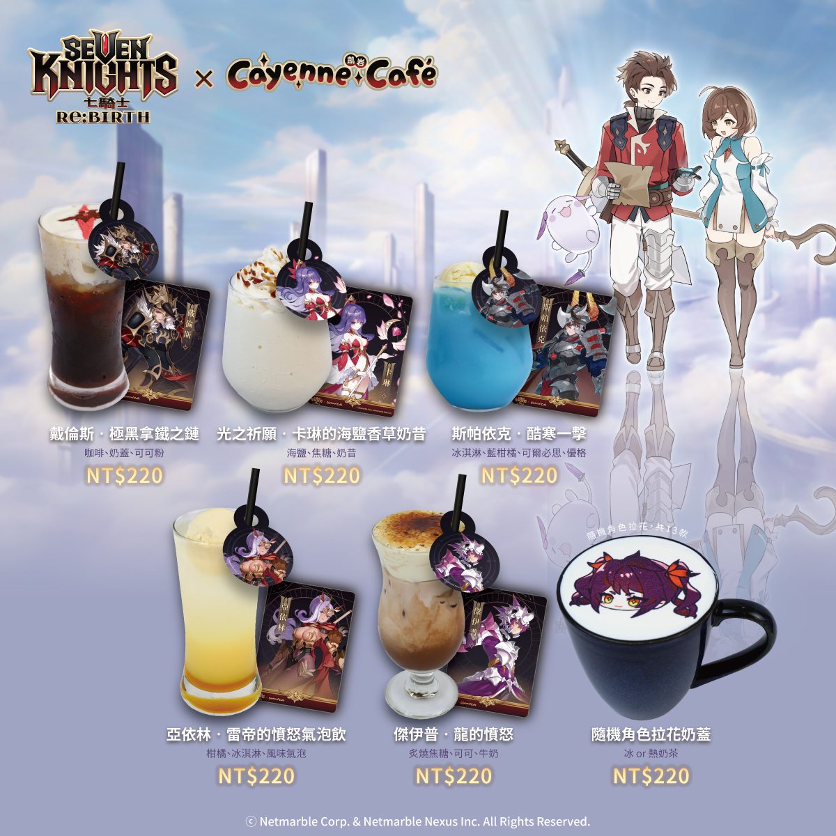 本次聯名除有精心設計的三款主餐、兩款甜點及五款特調飲品與大受歡迎的拉花奶蓋,更結合深度的沉浸式空間佈置與豐富限定活動、周邊等,喜愛七騎士的玩家們絕對不能錯過!