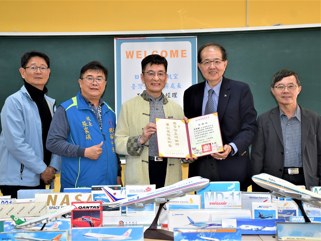 捐贈儀式訂於1/5日下午假興華中學觀光旅遊專科教室舉行,王富民總經理夫婦親自蒞臨興華中學,將珍貴的民航模型機正式移交捐于興華中學,校方亦以隆重的儀式迎接這批極富意義的教具教材與展示模型機,並表達誠摯感謝。