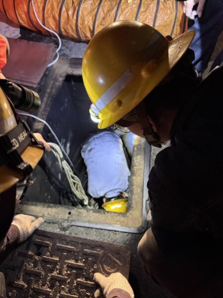 台電同仁漏夜搶修,因現場需要重新吊換故障變壓器及重新佈放電纜,尚有235戶停電,台電立即加派人力搶修。