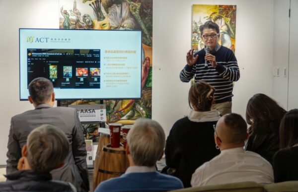 圖:元宇宙資產執行長潘欣頌介紹ACT藝術資產鏈證。(圖/AASA提供)