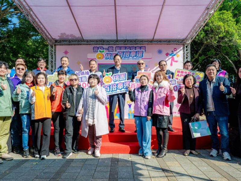 【News586/記者彭慧婉報導】「普發一萬.桃園百倍奉還」壓軸抽獎記者會,今(9)日下午在桃園市府文化局前廣場舉辦舉辦,桃園市長張善政表示,本次活動配合中央普發現金一萬元政策,自114年11月12日至12月31日,短短50天內吸引超過8.6萬名註冊會員參與,累計登錄發票逾243萬張,消費金額突破新臺幣20億元,成功串聯桃園在地商圈及觀光工廠,發揮「1加1大於2」的加乘效果,顯著活絡在地經濟。