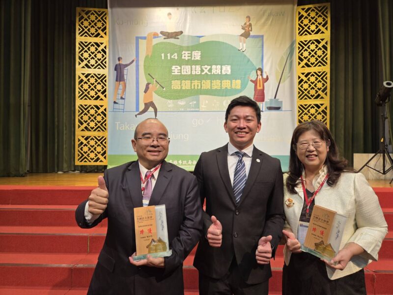 其夫人陳淑敏老師則以臺語教師及教育局本土語輔導員的專業身份參賽,她憑藉深厚的教學底蘊和對臺語語音美學的專業掌握,在教師組臺語朗讀中脫穎而出,以精準的發音與豐富的感情,完美詮釋文章意境,再次驗證高雄市本土語師資的卓越水準。二人獲得特優的肯定可謂實至名歸。