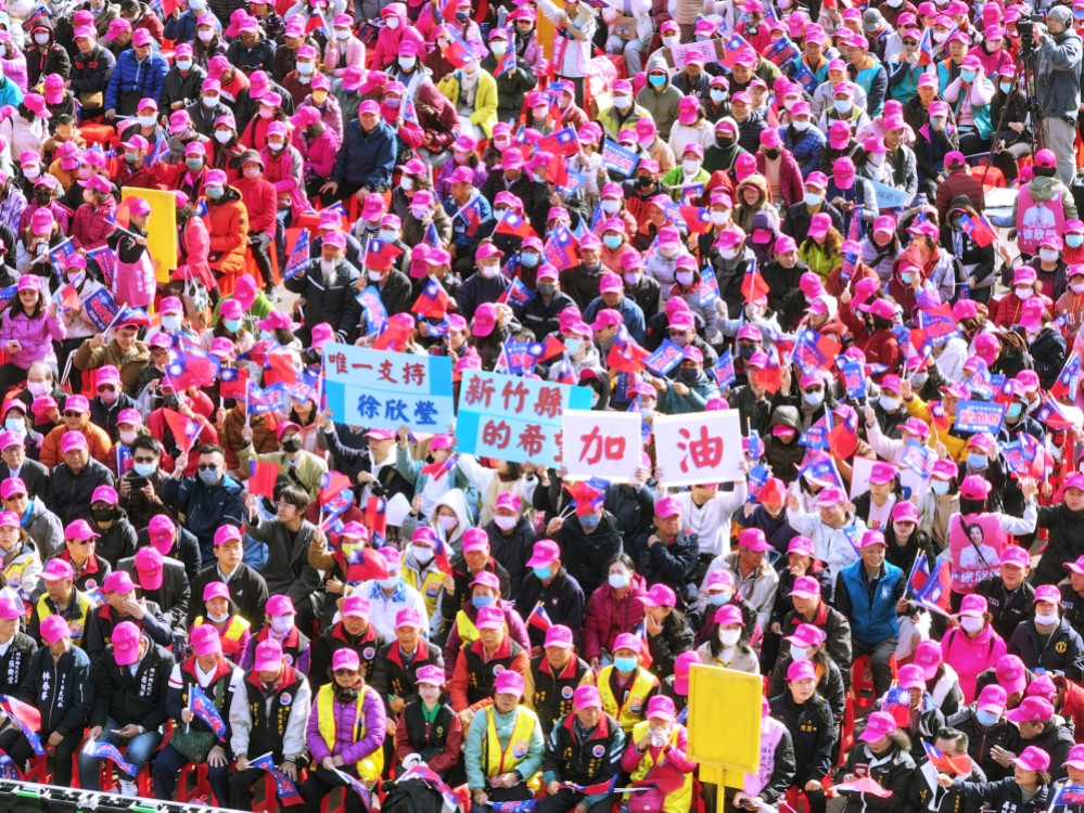 ▲爭取國民黨新竹縣長提名的立法委員徐欣瑩在湖口鄉舉行首場大型造勢誓師大會,現場仍湧入逾萬名支持者擠爆會場,寒風凜冽吹不熄熾熱支持民眾的熱情。(圖/徐欣瑩辦公室提供)