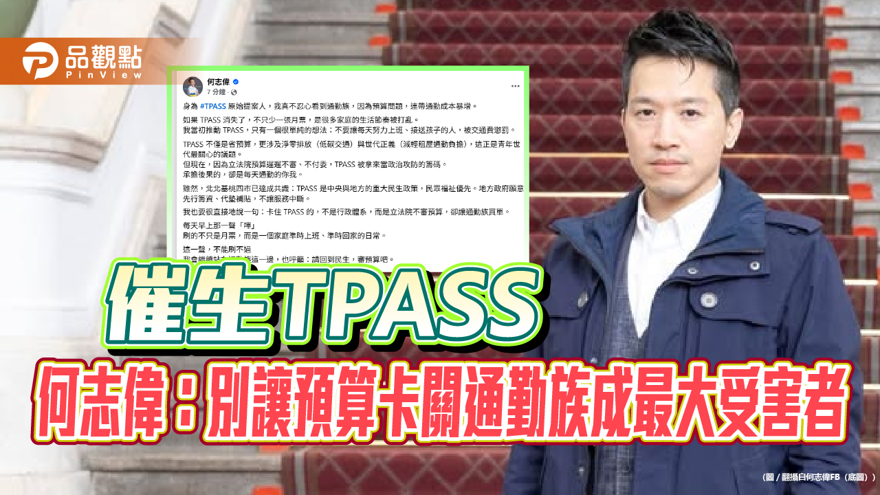 不過,何志偉直言:「卡住TPASS 的,不是行政體系,而是立法院不審預算,卻讓通勤族買單。」他呼籲,預算審議不該淪為政治對抗的工具,更不該拿民生政策當籌碼。