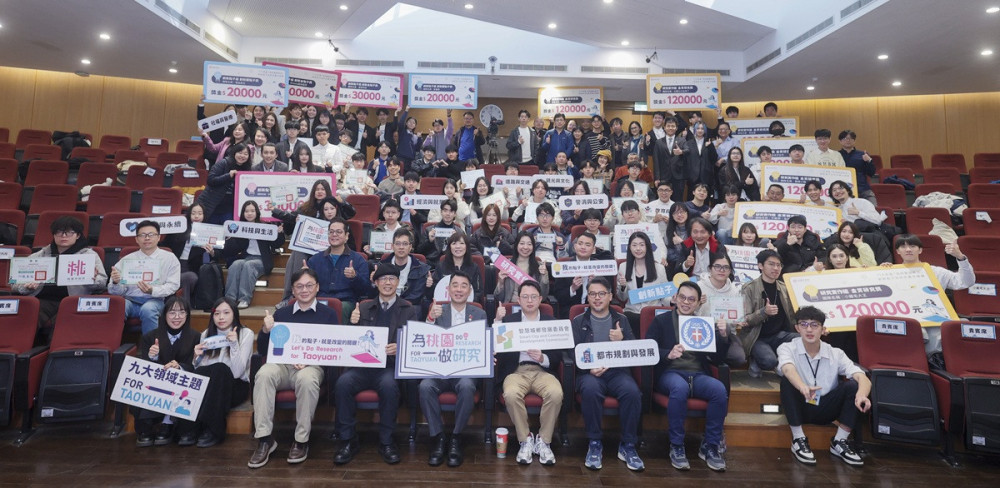 桃園市政府於115年1月10日在中原大學舉辦「為桃園做研究」大專校院學生創新點子及研究實作競賽頒獎典禮,鼓勵青年以研究與專業實作回應城市議題。這屆競賽吸引全台33所大學、233組團隊,超過530位學生參與;其中,中原大學係這屆獲獎數最多的學校,表現亮眼。中原大學於創新點子組奪得「創新金點子獎」3項、「創新銀點子獎」2項及多項創意獎,在研究實作組亦獲得5項「金質研究獎」與5項「潛力研究獎」,成果涵蓋交通安全、環境再生、智慧能源、永續設計與高齡照護等議題,展現中原師生跨域創新與實作能量。