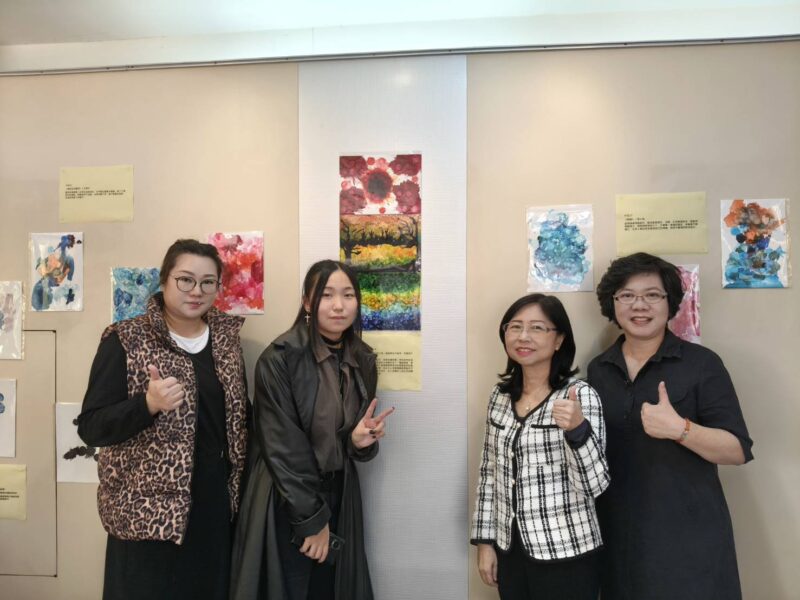 醫學與健康學院陳中一院長兼系主任認為最難能可貴的是,酒精墨水畫作涵蓋健美系、幼保系、護理系、物治系、休憩系與生科系學生,情感故事創作則來自職安系、保營系、休憩系、健管系、健美系、護理系及醫技系學生,尤其班上還有多國境外生,充分展現跨系共學、多元融合的教學特色。