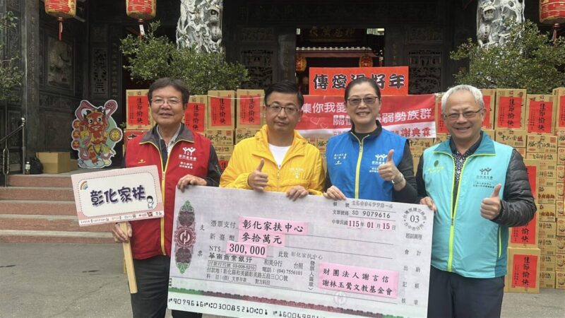 【焦點時報/記者林明佑報導】為讓弱勢家庭在除夕夜也能圍爐團圓、溫暖過年,彰化家扶中心持續為縣內約1700戶扶助家庭募集幸福年菜。財團法人謝言信謝林玉鶯文教基金會連續第6年響應,今年再捐贈200套年菜,累計已達1400套,今(15)日在溪州鄉后天宮舉行捐贈儀式,由彰化縣議長謝典霖代表基金會完成捐贈,他表示,基金會以祖父母之名成立,秉持「取之於社會、用之於社會」的精神,將持續關懷弱勢家庭,讓愛心在寒冬中不間斷延續。