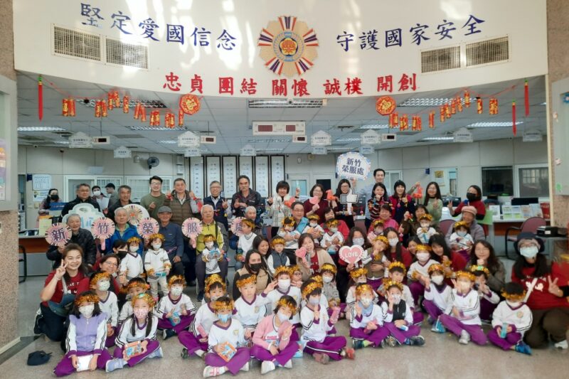 ▲新竹榮服處攜手清大附小幼兒園師生迎春向榮民(眷)長輩拜年。新竹榮服處鞠宗顯處長暨全體同仁、榮民(眷)長輩及清大附小校長李佳蓮、幼兒園師生合影。(圖/新竹榮服處提供)
