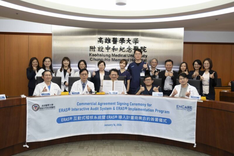 高雄醫學大學附設中和紀念醫院(以下簡稱高醫)自2021年起系統性推動 ERAS 照護方案,迄今已有603例手術病人依此模式完成照護。臨床成效顯示,術後併發症發生率大幅降低約 50%,平均住院天數更縮短約30%,充分展現 ERAS 在提升照護品質與醫療效率上的實質成效。為進一步強化國際實證醫療、標準化圍手術期照護及智慧醫療發展,高醫於昨日(1/16)與瑞典Encare 簽署 ERAS® 互動式稽核系統(ERAS® Interactive Audit System, EIAS)及 ERAS® 導入計畫(ERAS® Implementation Program, EIP)合作,成為南台灣首家與 Encare 簽約的醫療機構,高醫以國際標準精進醫療品質,期望打造世界級ERAS 術後康復照護典範。
