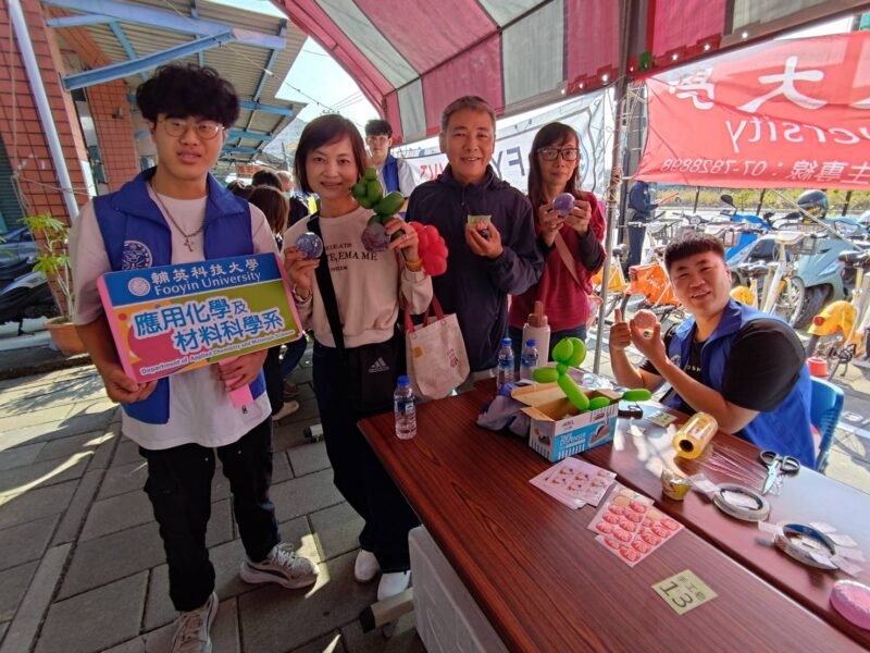 現場不僅開運手工皂搶手,曾榮獲教育部全國大專校院學生社團評選「優等獎」及「全場最佳人氣獎」的輔英魔術氣球創意社,更是吸引大小朋友目光,學生以純熟技巧製作各式可愛動物與新年吉祥造型氣球,孩子們圍繞在學生身旁排隊索取,為社區增添滿滿年節歡樂氣息。