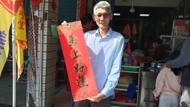 馬年揮毫結緣吸引民眾排隊領取 妙善聖堂攜手尚有麵店送春聯做公益