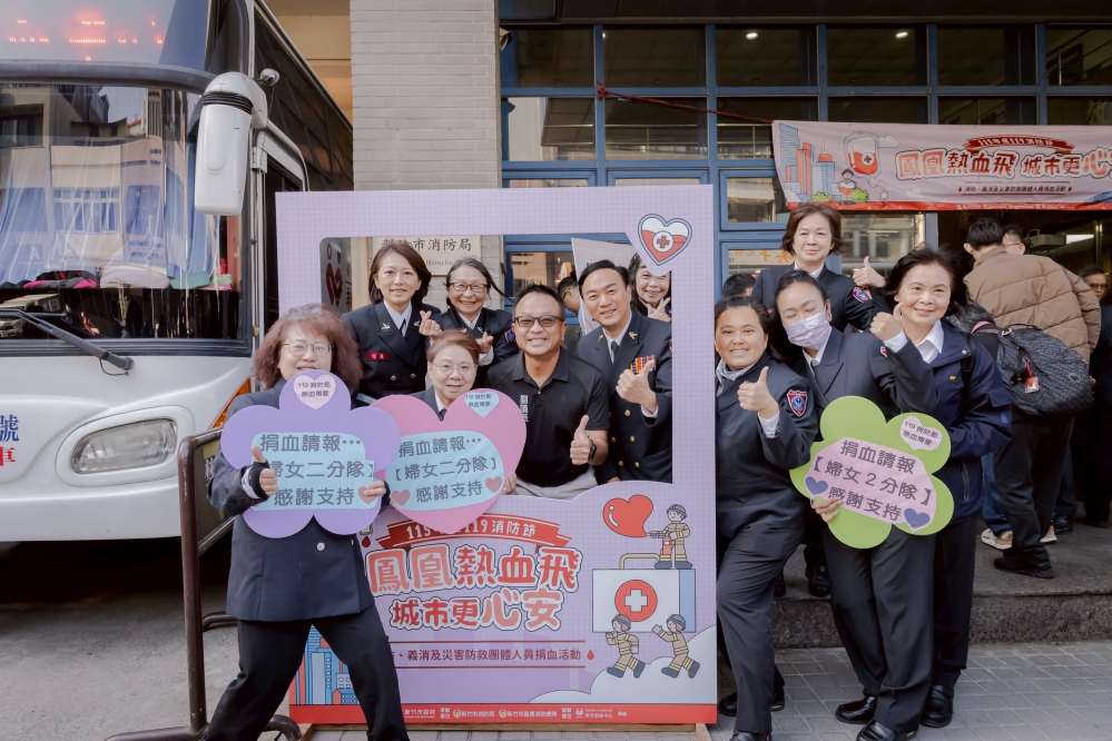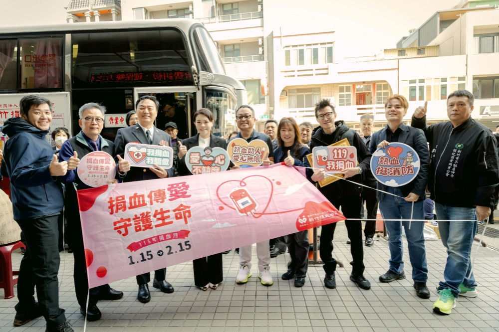 新竹捐血中心聯手竹市消防局舉辦的「115年消防、義消及救難志工人員119捐血」活動,主題係「鳳凰熱血飛.城市更心安」,今(1/19)日盛大在竹市消防局一樓前廣場盛大登場。新竹市長高虹安到場向熱情參與捐血活動的警義消、眷屬及熱心的市民鼓勵並表達感謝。