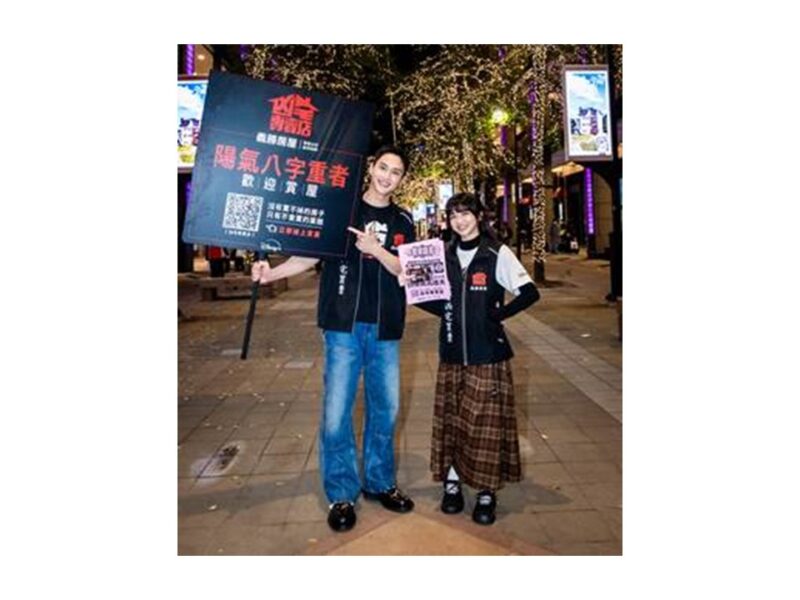 台北訊|Disney+懸疑驚悚台劇《凶宅專賣店》自上線以來話題與口碑爆棚,不僅在社群引發劇迷熱烈討論,更在播出48小時內衝上Disney+ 台灣熱播排行榜第一名!18日主演金馬新人范少勳及陳姸霏也在夜間現身信義區香堤廣場,兩人換上「義勝房屋」房仲裝備,包括手拿廣告牌,房屋宣傳單與面紙等,從「義勝房屋」走出螢幕與觀眾互動。范少勳、陳姸霏也在「精彩影旅」快閃體驗裝置合影,俏皮擺出各種姿勢,而兩人並肩站立的超萌身高差更是CP感十足,也讓粉絲們更加期待這對命中注定的「冤親債主」在劇中將擦出怎樣的火花。