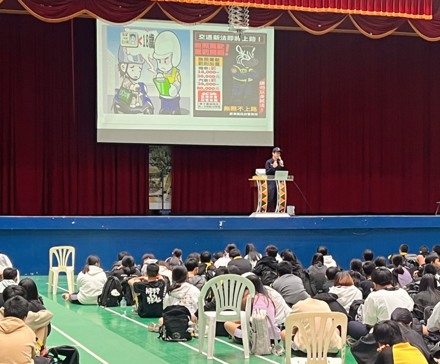 首先由偵查隊進行防詐騙宣導,分析學生族群常見的詐騙手法,如假交友、假網拍等;並提醒學生牢記不提供帳戶、不寄送證件、不貪圖便宜等識詐原則,避免落入詐騙陷阱。接續由交通組進行交通安全宣導,呼籲學生拒絕酒駕、毒駕及無照駕駛;騎乘微型電動二輪車應配戴安全帽並遵守相關規定。