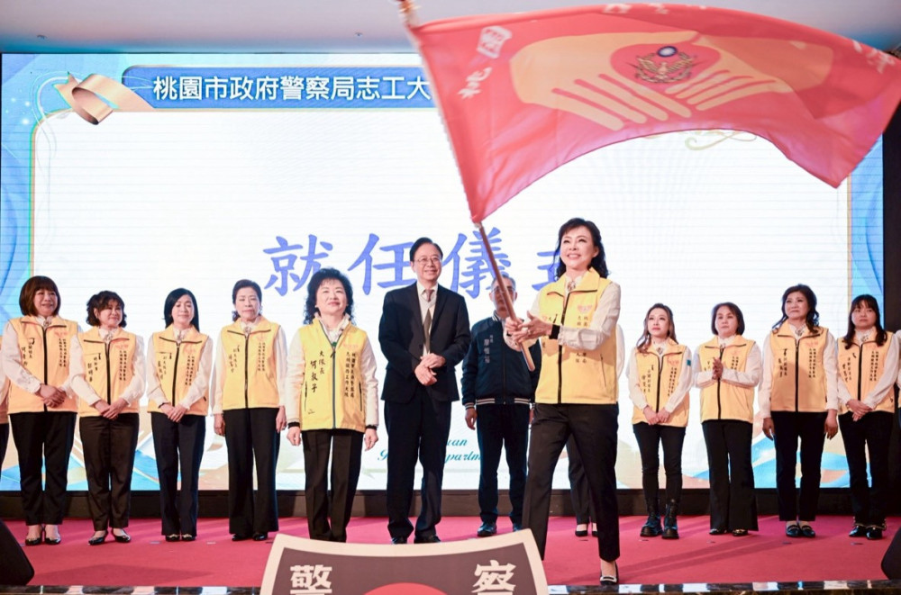 典禮在桃園市長張善政親臨監交下進行,並由桃園市政府警察局局長廖恆裕、各級警政主管、志工夥伴與貴賓共同見證。卸任志工大隊長 何淑子 將象徵責任與榮耀的志工大隊旗正式交接予新任大隊長周矢綾,儀式莊嚴隆重,現場氣氛溫馨感人。