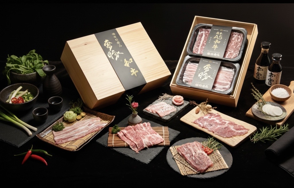 ▲「信功肉品」年節限定推出「和牛麥豚金典限定套組」禮盒,以木製禮盒設計盛裝,賦予高尚品味。圖/信功肉品 提供