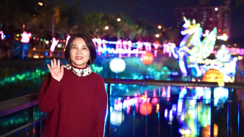 縣長周春米今晚邀請媒體搶先開箱萬年溪燈區,主燈「騰光」以駿馬躍出水面的瞬間為創作靈感,透過聲光交織的動態演繹,呈現生命甦醒、能量迸發的畫面,吸引不少民眾駐足欣賞、拍照留念。