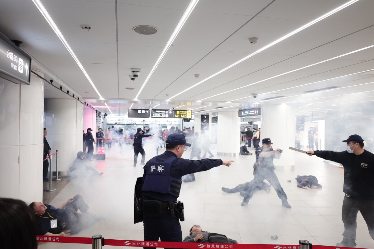 繼去年底在台北捷運市政府站進行演練後,台北市政府1月22日下午在台北車站再度舉辦無差別攻擊危安演練,模擬多名歹徒在台鐵月台丟擲煙霧彈後,於地下3樓共構區內無差別攻擊民眾,接著攜帶爆裂物逃竄至地下街區。