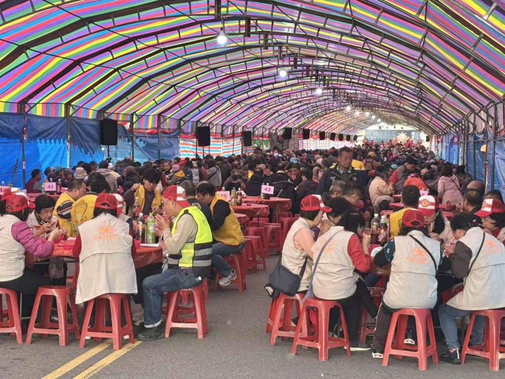 ▲竹蓮寺與達摩慈善功德會在竹蓮寺前廣場舉辦歲末關懷寒士、耆老及清寒家庭尾牙宴活動,現場席開160桌,人山人海、熱鬧非凡。(圖/竹市府提供)