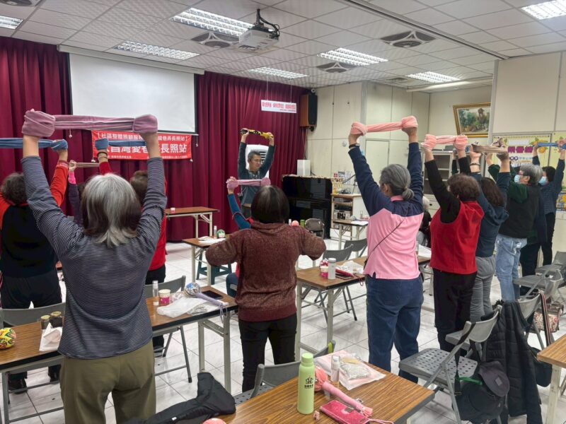 圖/灣愛巷弄長照站長輩一起做居家毛巾健康操