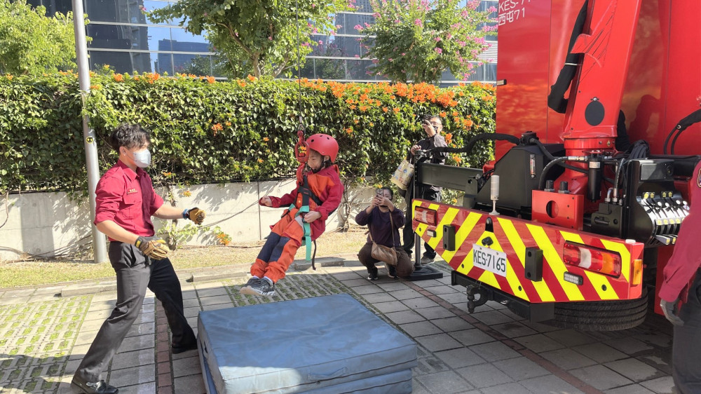 不少攤位前都大排長龍,小朋友對首次體驗「救火英雄的日常」、感到新鮮又崇拜;家長們也忙著補捉孩子英勇的「歷史鏡頭」,現場氣氛熱鬧溫馨。