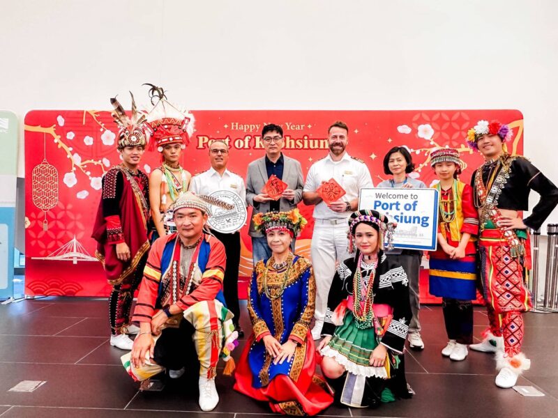 高雄港務分公司為歡迎「愛達女神」首航,特別舉行噴水儀式,並致贈船長首航紀念牌。現場與高雄市政府海洋局攜手合作,安排傳統原住民迎賓舞蹈表演及春聯書法體驗活動,由書法老師帶領旅客親手書寫春聯,讓國際旅客近距離感受臺灣傳統文化魅力。