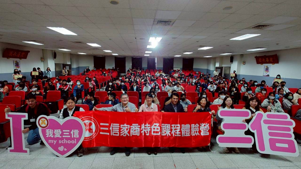 三信家商設有餐飲管理科、烘焙食品科、商業經營科、資料處理科、廣告設計科、應用日語科、幼兒保育科、美容科、照顧服務科及寵物經營科,多年來在技藝競賽、升學表現及產學合作上成果亮眼,深受家長與學生肯定。