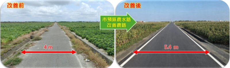 地政局長陳淑美表示,本次視察地點為將軍區馬沙溝農地重劃區東三路農路改善工程,於114年6月15日開工,8月23日竣工。該農路自民國67年農地重劃完工後,長年使用破損且路旁雜草蔓生,市府自籌市預算225萬元由將軍區公所重新整修農路,鋪設AC路面共808公尺。改善前路寬為4公尺,改善後移除既有雜草灌木,地盡其用,寬度增加至5.4公尺,不僅提升大型農機具作業便利性,同時劃設路側邊線更能強化農民及用路人通行安全。該區域周邊盛產玉米,紅蘿蔔,洋香瓜,高粱及牛蒡等豐富農特產,改善後對農產品搬運及往來車流交通安全之提升,有效帶動農業邁向永續發展。